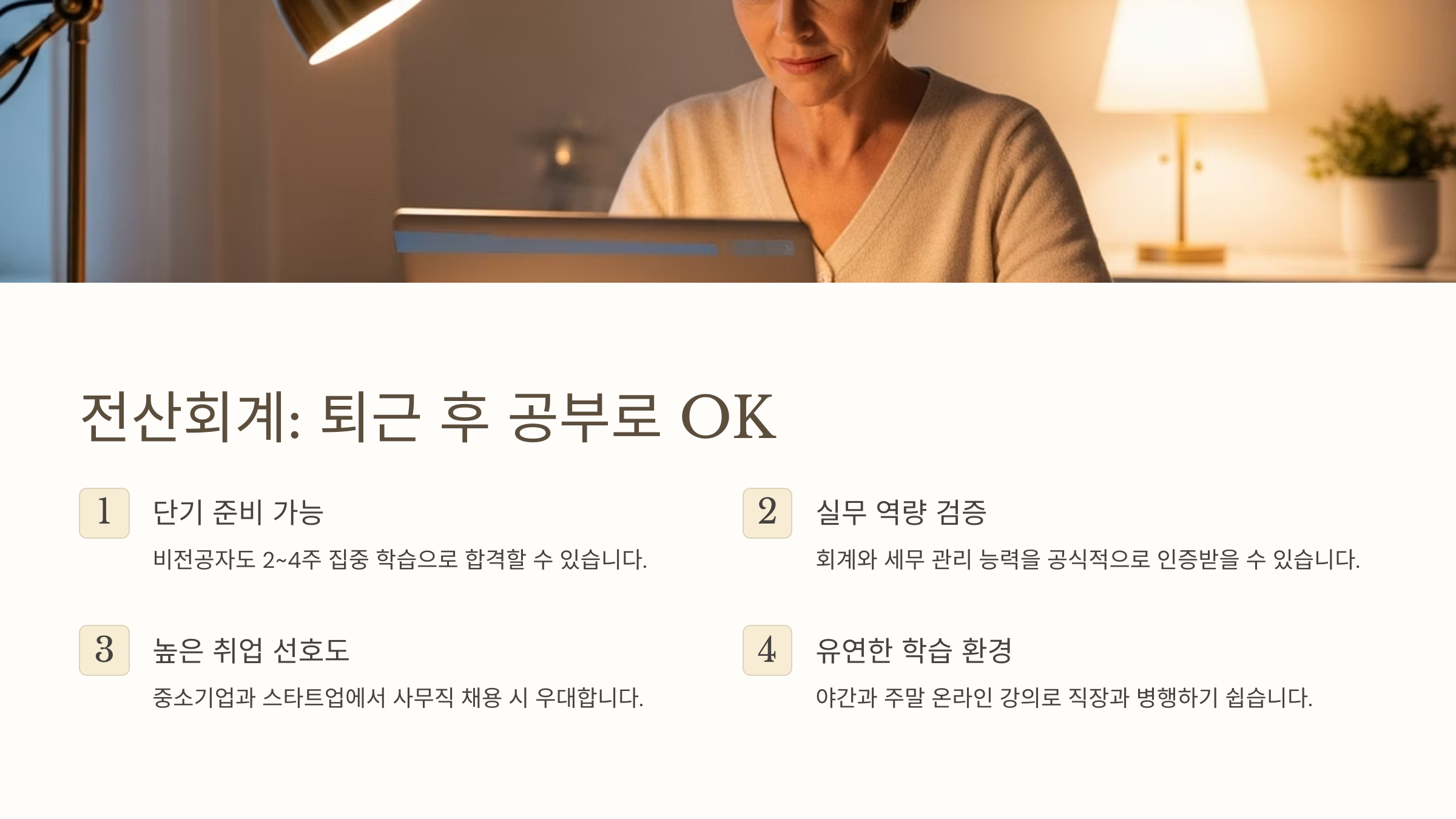 A8. 컴활 2급, 한국사능력검정, 전산회계 2급은 단기 준비가 가능해서 ‘지금 바로’ 도전하기 좋은 자격증이에요!